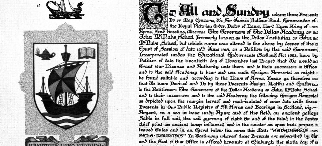 Герб Dollar Academy, созданный в 1918 году и вдохновленный символом клана Кэмпбелл, включает лямфад (корабль), гирроны (треугольные секции), открытую книгу знаний и лампу обучения. Данный символ олицетворяет стремление к знаниям и академическим достижениям. Девиз этой школы: «Juventutis Veho Fortunas» («Я несу удачу молодости»), отражает миссию Dollar Academy в формировании будущих лидеров.